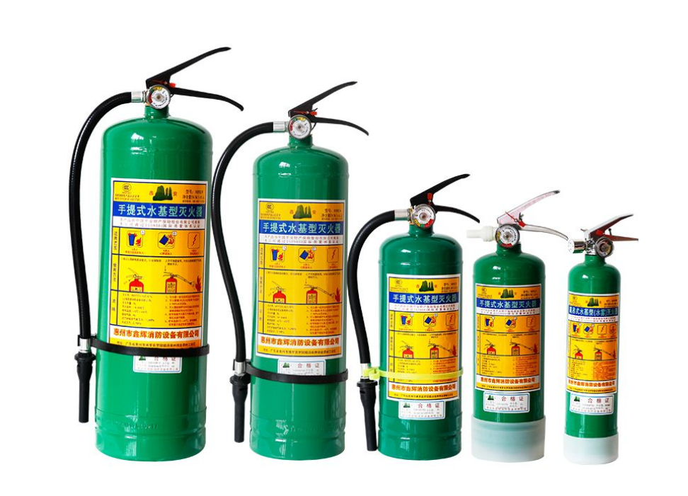 水基灭火器,这种类型的灭火器可用于由石油,电力和固体可燃物引起的火灾,特别是用于电气和汽车火灾。水基灭火器也覆盖表面,直接隔绝空气,并形成一个不像干粉灭火器那样重新点燃的保护膜。
